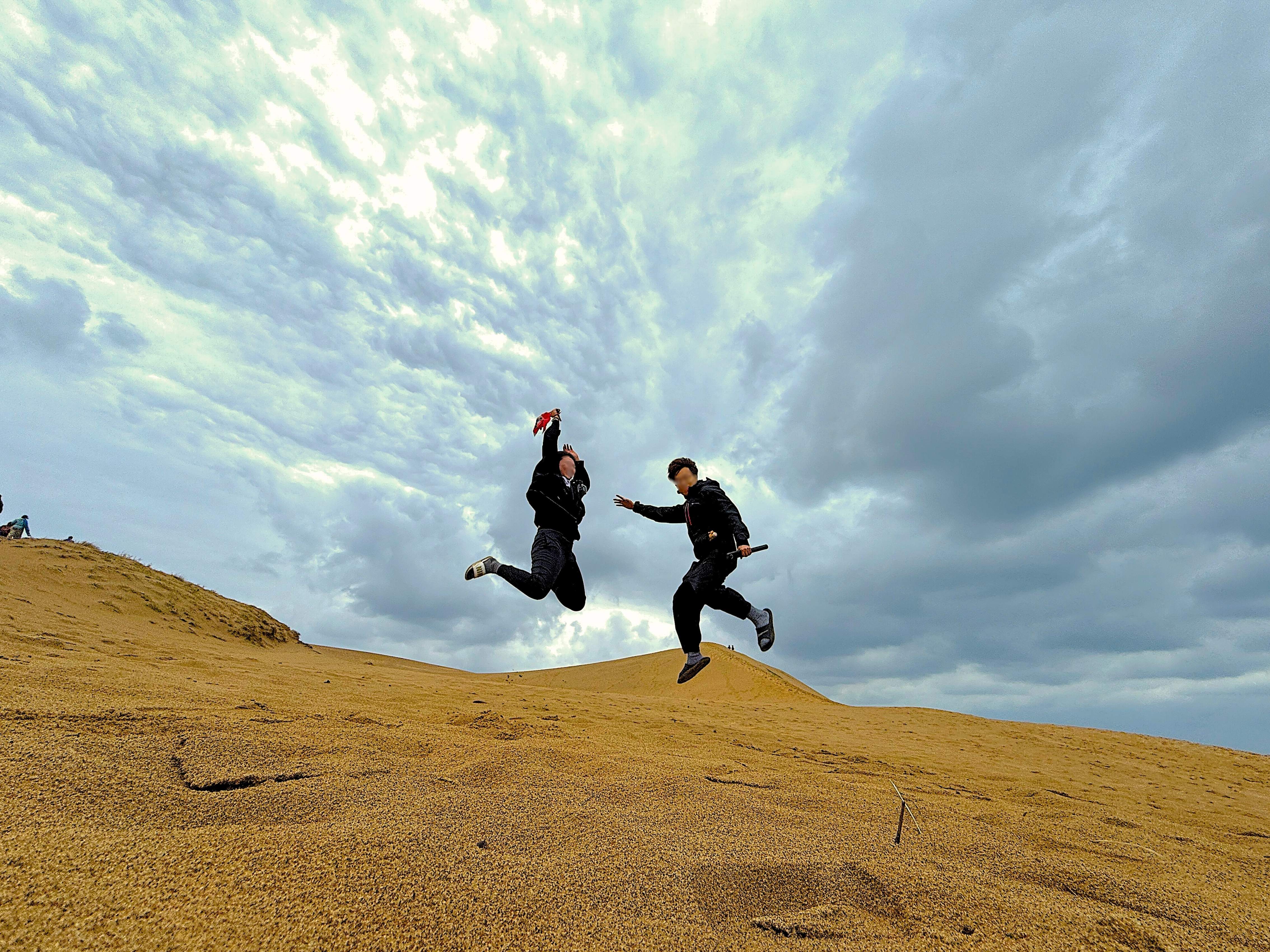 【鳥取砂丘】後方矗立著醒目的大型建築「砂丘中心-見晴之丘」,遊客可乘坐吊椅緩緩登頂,眼前即展現出一望無際的大海、湛藍天空與遼闊沙丘交織而成的絕美景致,令人屏息。砂丘前更有全日本首間以砂為主題的布丁專門店 Totto PURIN,採用100%生牛奶與日本海藻鹽製作,口感細膩滑順,榮獲2022年《日本經濟新聞》布丁排行榜全國第一,絕對值得一試。